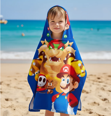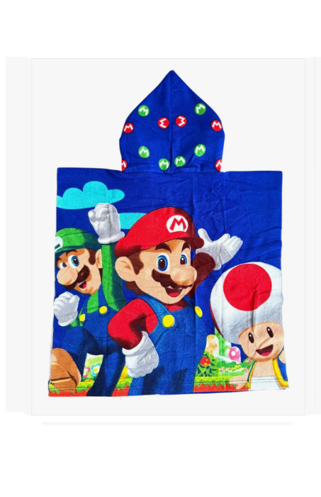 Poncho Toalla Capucha Microfibra Piñata Disney Mario Bros 50 x 120 cm